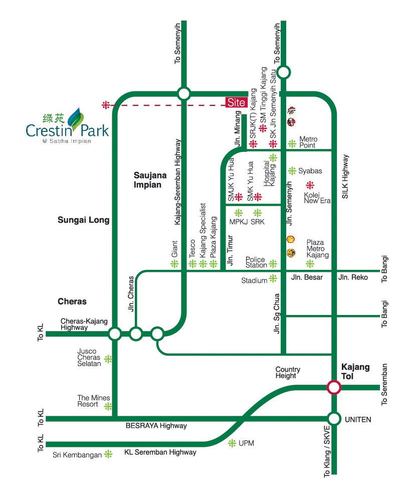 Within Kajang town center, surrounded by urban living amenities - shopping complex, KFC / Pizza Hut, primary & secondary schools, colleges, government institutions, hospital etc.
